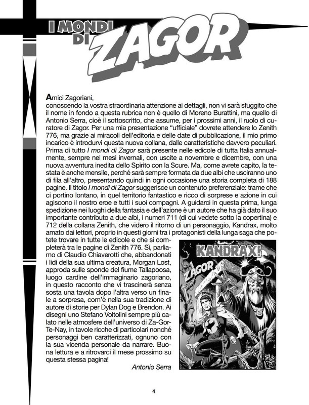 Desidero rivolgere un sincero in bocca al lupo al nuovo curatore Serra, ed esprimere al tempo stesso la mia profonda gratitudine a Burattini. La sua grande passione, professionalità e competenza gli hanno permesso di essere uno dei principali artefici della straordinaria e lunghissima vita editoriale di un personaggio che, in origine, doveva durare solo pochi anni e che invece sembra davvero non avere fine. La collana sta tagliando traguardi inimmaginabili che non possono essere ignorati almeno da quelli che non vogliono riscrivere la storia della collana