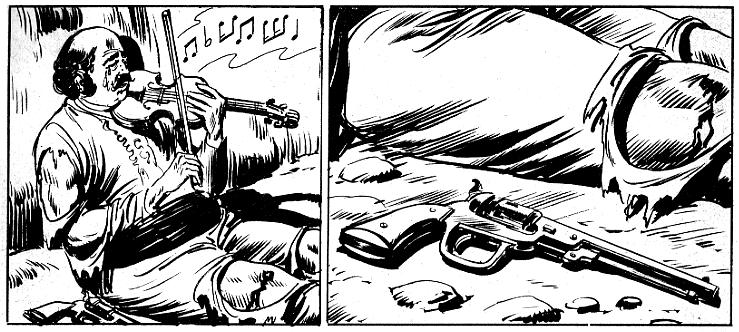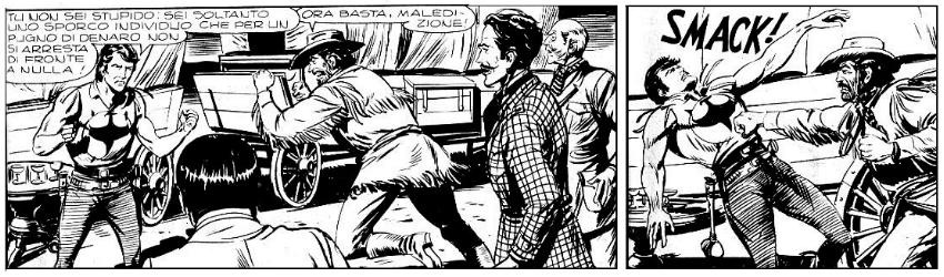 Da notare che la sequenza ha un finale "in sospeso"; vediamo solo un primo piano della pistola appoggiata a terra, non assistiamo né all'arrivo dei Kiowas né al rimbombo dello sparo in lontananza che dovrebbe testimoniare il suicidio di Klain. Giustamente, Nolitta sposta il tutto sul piano della suggestione emotiva, dell'immaginario del lettore (un terreno di cui la narrazione moderna sembra aver dimenticato l'enorme valore).