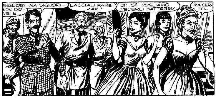 • Sempre a proposito della zuffa tra Zagor e Memphis Joe, è interessante notare le reazioni euforiche delle nobildonne, totalmente inconsapevoli del motivo di fondo di quella lotta. Nessuna sembra rendersi conto che la posta in gioco è la loro stessa vita; per loro è solo una eccitante esibizione dell'essenza del selvaggio west.
