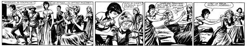 Toccante la disperazione di Frida quando Zagor si offre ai Kiowas in cambio della vita dei superstiti.