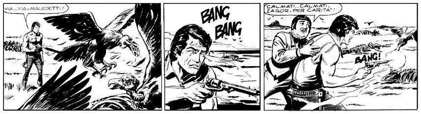– Molto forte la scena in cui Zagor vede i bisonti morti nella prateria, e per sfogare la sua indignazione si mette a sparare agli avvoltoi. Il tipico Zagor di Nolitta che perde il controllo di fronte ad un ingiustizia; una caratteristica che purtroppo gli altri autori hanno saputo replicare solo di rado.