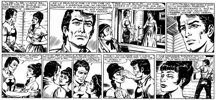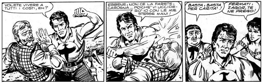 Ok, è una soluzione che può piacere o non piacere a seconda del gusto personale; io l'ho trovata una brutta caduta di tono. Soprattutto perché lascia intendere che il bel discorso fatto da Zagor poco prima era FALSO, un panegirico per intontire la ragazza in modo da permettergli di filarsela dalla finestra come un mascalzone (senza contare che una risoluzione del genere ammazza il romanticismo delle epiche scene tra Zagor e Frida ad ogni futura ri-lettura dell'episodio).