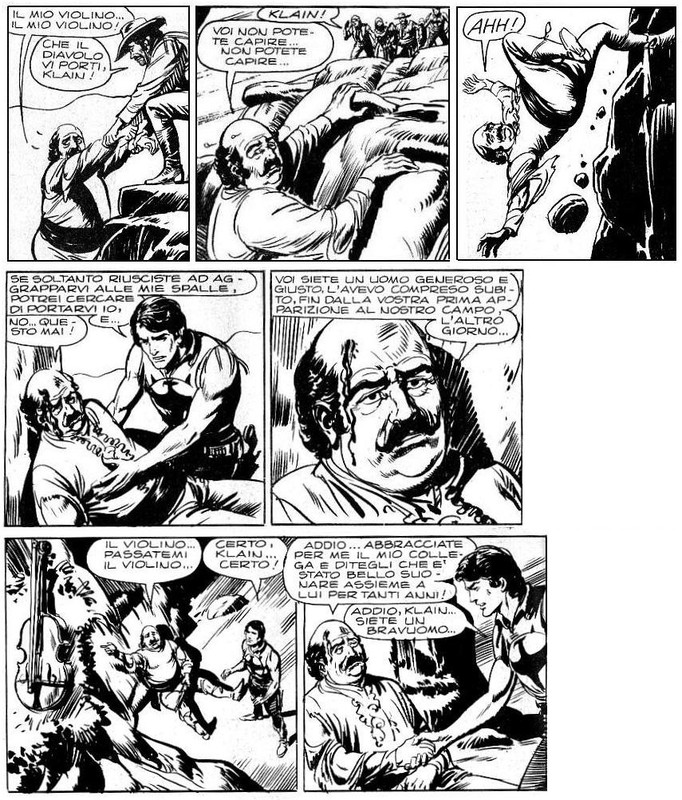 La struggente fine del violinista Klain. Un tocco di autentica poesia di Nolitta, che con poche battute riesce a dare grande spessore anche ad un semplice comprimario di terza fila.